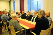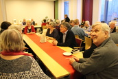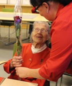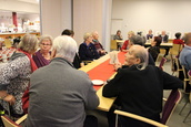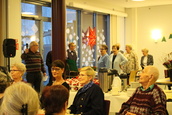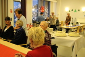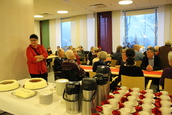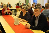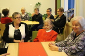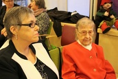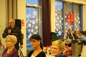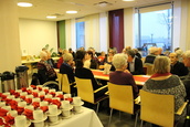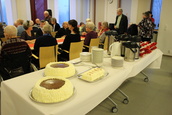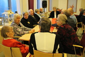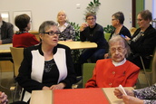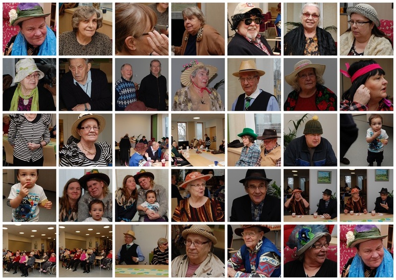 Iloiset laskiaisen hattujuhlaan osallistujat